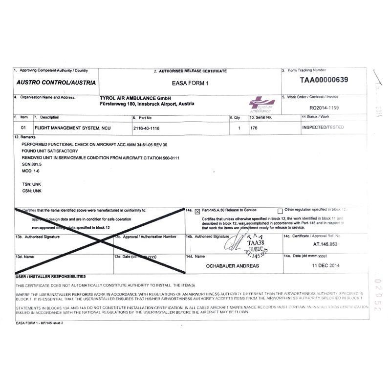 comes with EASA FORM 1